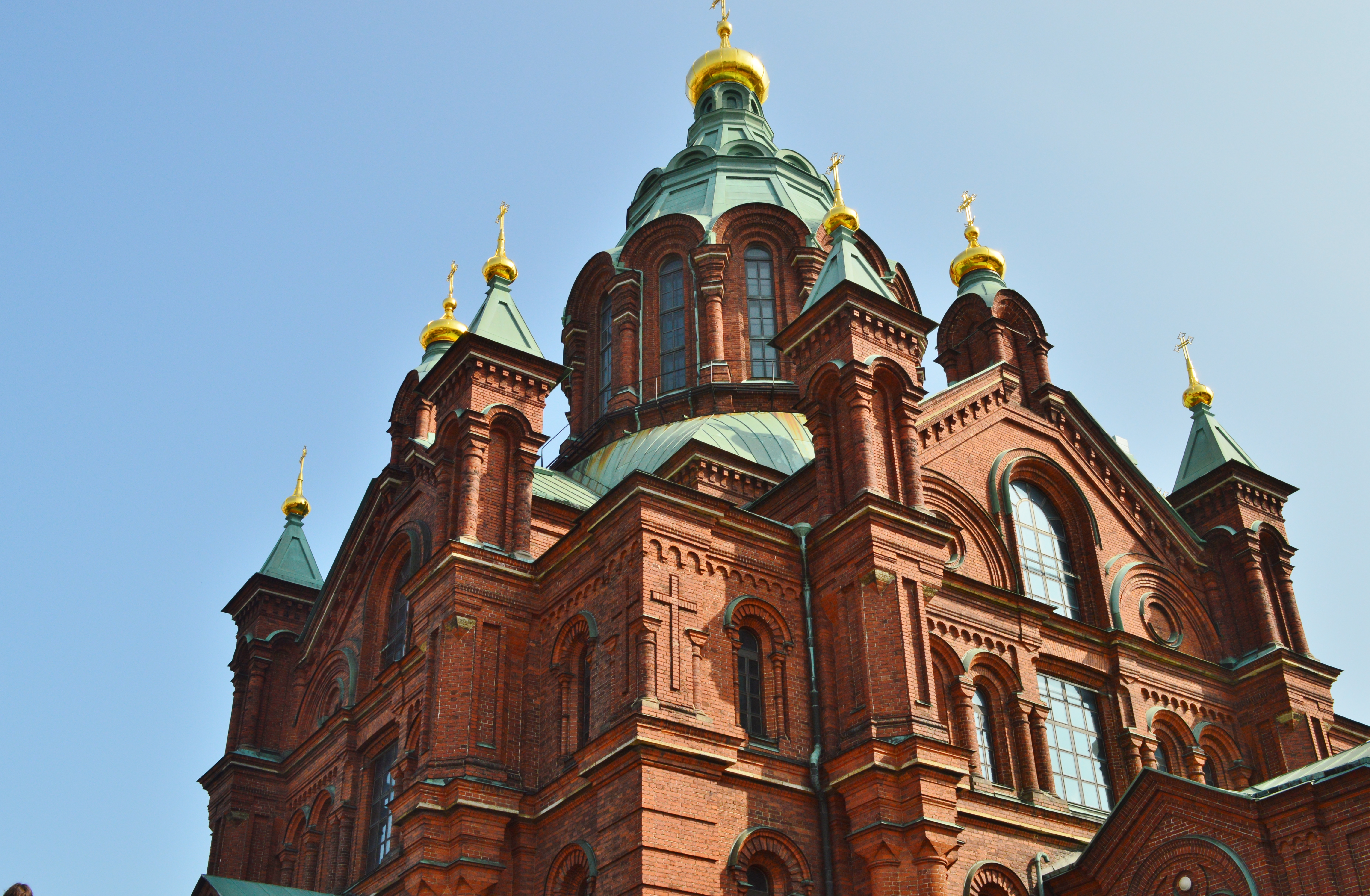 From there, we walked towards the other, famous church in Helsinki – the orthodox church on a small hill on the other side of the water, across from the cathedral. Quite the contrast – the cathedral is a bright, clear, almost minimalist building, whereas the orthodox church boasts the typical Russian pomp – gold plating, icons, fur coats, crowns, you name it!