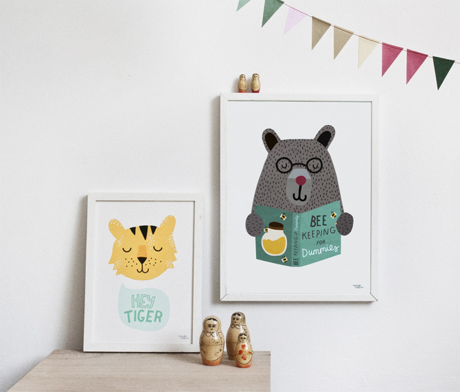 The talented young Danish designer aims to create playful, warm, and nostalgic designs, and I for one am completely in love with her cute and quirky characters and the generally whimsical feeling about her artwork. Michelle’s process includes designs that are cut and glued, others are ink drawings or use watercolors. Some of the recurring motifs include sailors and nautical scenes as well as animals, like a tiger or an incredibly adorable bear.